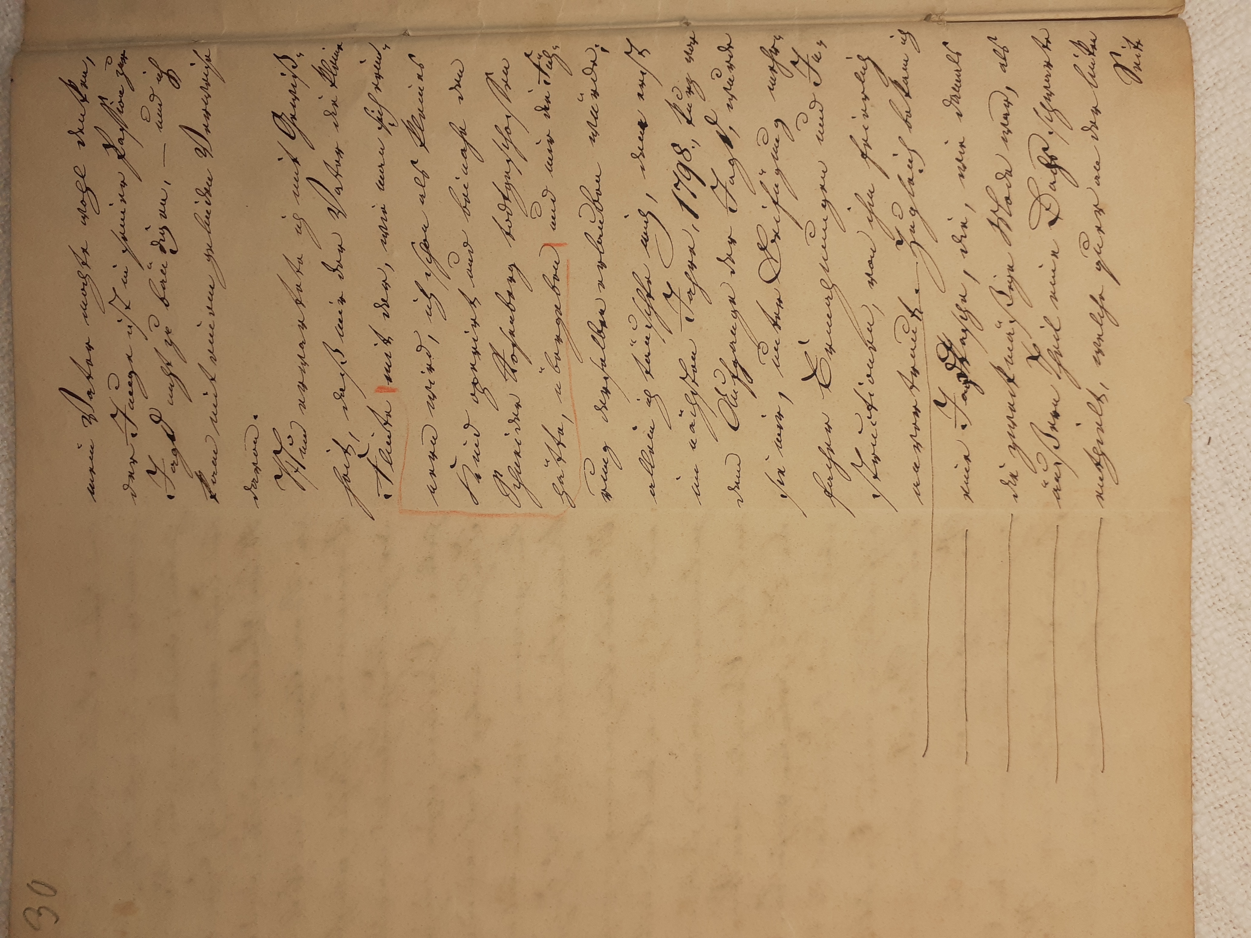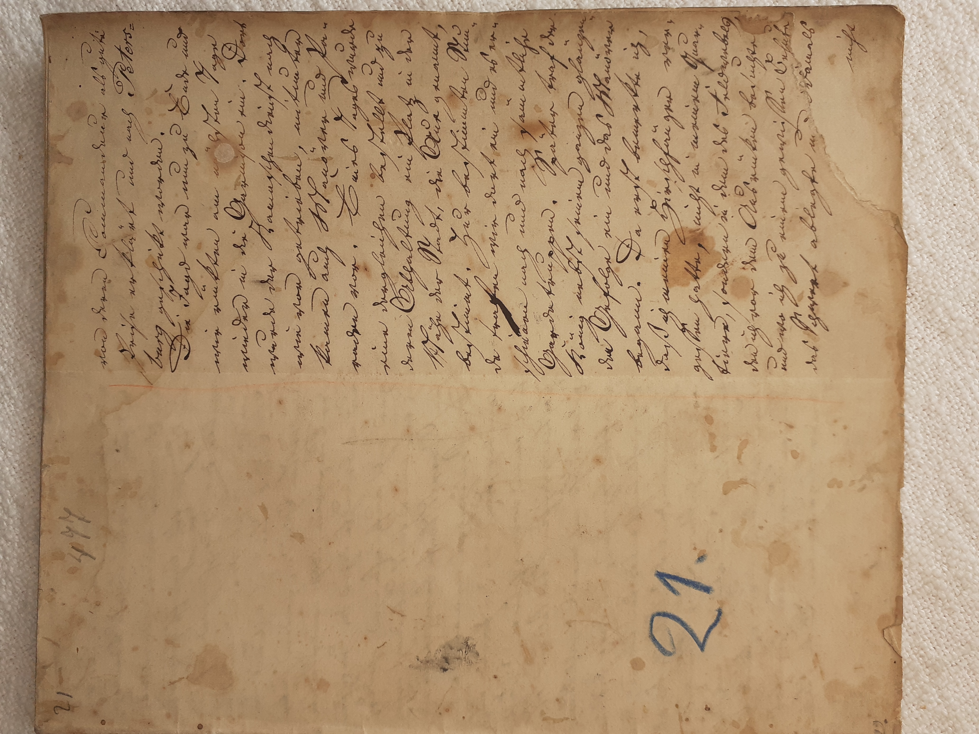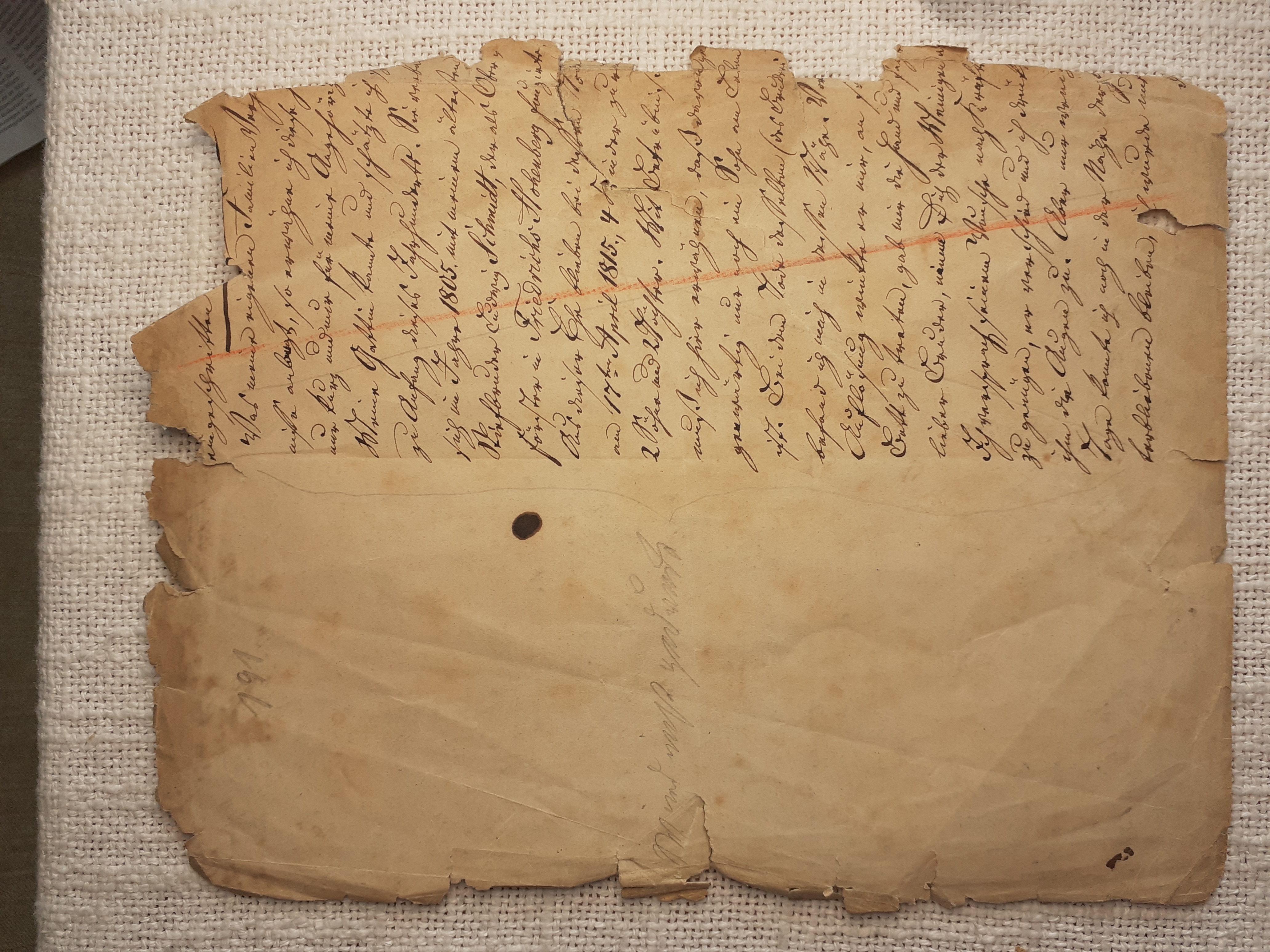 mit herein zu fahren. Der Knecht mähte und wir nahmen hinter ihm das Futter auf. Unvorsichtig kam ich dem Mäher zu nah und er hieb mir mit der Sense die Wade des rechten Beins bis auf den Knochen durch, so daß man die Sense auf dem Knochen durch streifen hörte. Freilich stimmte ich hierbei ein Klagelied an, indessen faßte mich das Mädchen und trug mich nach Hause, wobei viel Blut verloren ging. Meine Mutter, die allerlei Hausmittel anzuwenden verstand, auch immer einen kleinen Vorrath von Pflastern etc. bereit hielt, reinigte die Wunde, stillte das Blut und verband solche mit Scharpie und Degestin4. Später verband ich sie selbst und der Schaden würde sehr bald geheilt worden seyn, wenn ich mehr darauf Bedacht gewesen wäre, Stöße, Schläge etc. davon abzuwenden. Das Merkmal von der Wunde ist