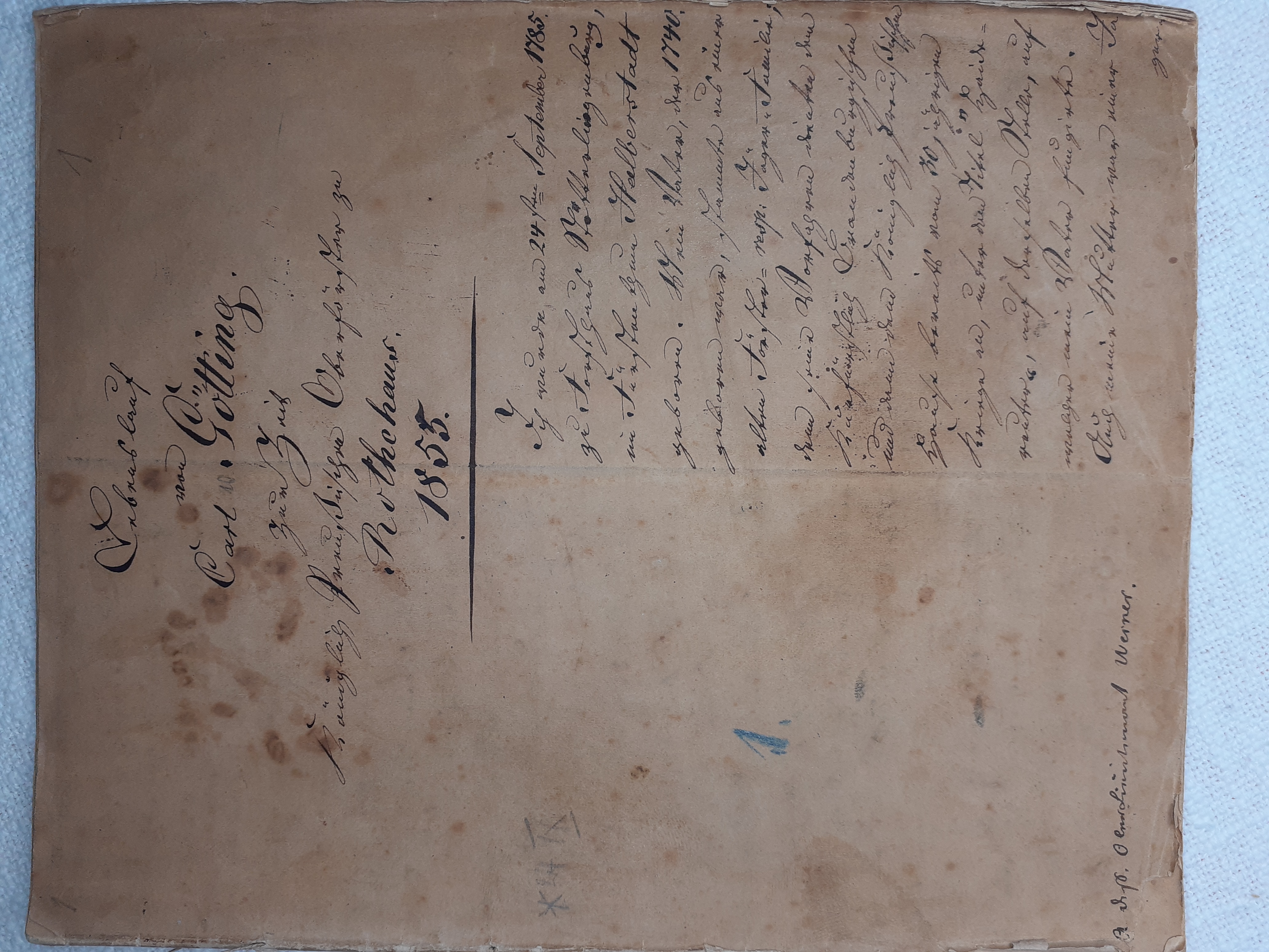 Ich wurde am 24sten September 1785 zu Forsthaus Stötterlingenburg im Fürstenthum Halberstadt geboren. Mein Vater, der 1740 geboren war, stammte aus einer alten Förster- resp. Jäger Familie denn seine Vorfahren dienten dem Kurfürstlich Brandenburgischen und dann dem Königlich Preußischen Hause bereits vom 30jährigen Kriege an, unter dem Titel „Haidereuter“, auf derselben Stelle, auf welcher mein Vater fungierte. Auch meine Mutter war einer Jä-