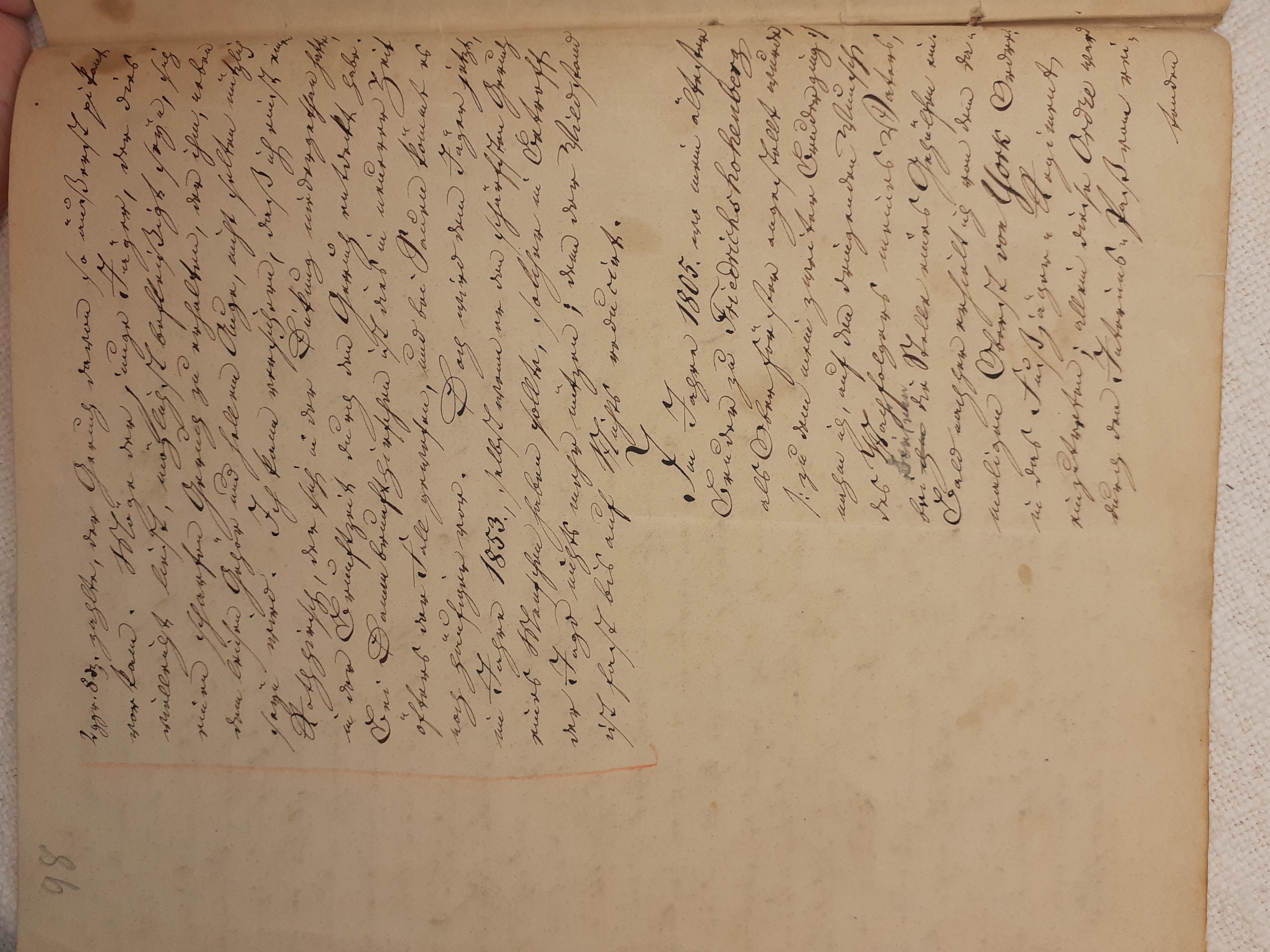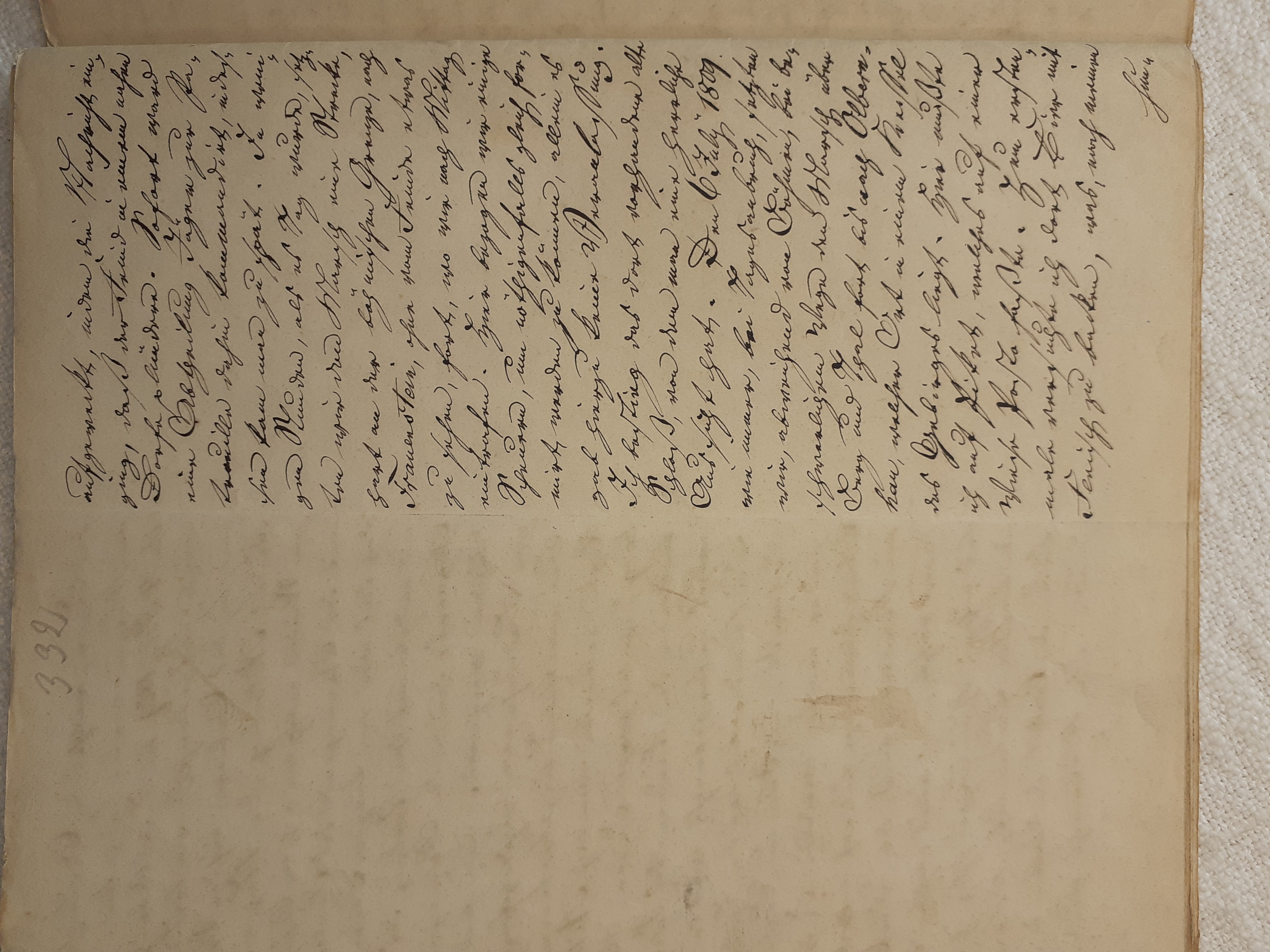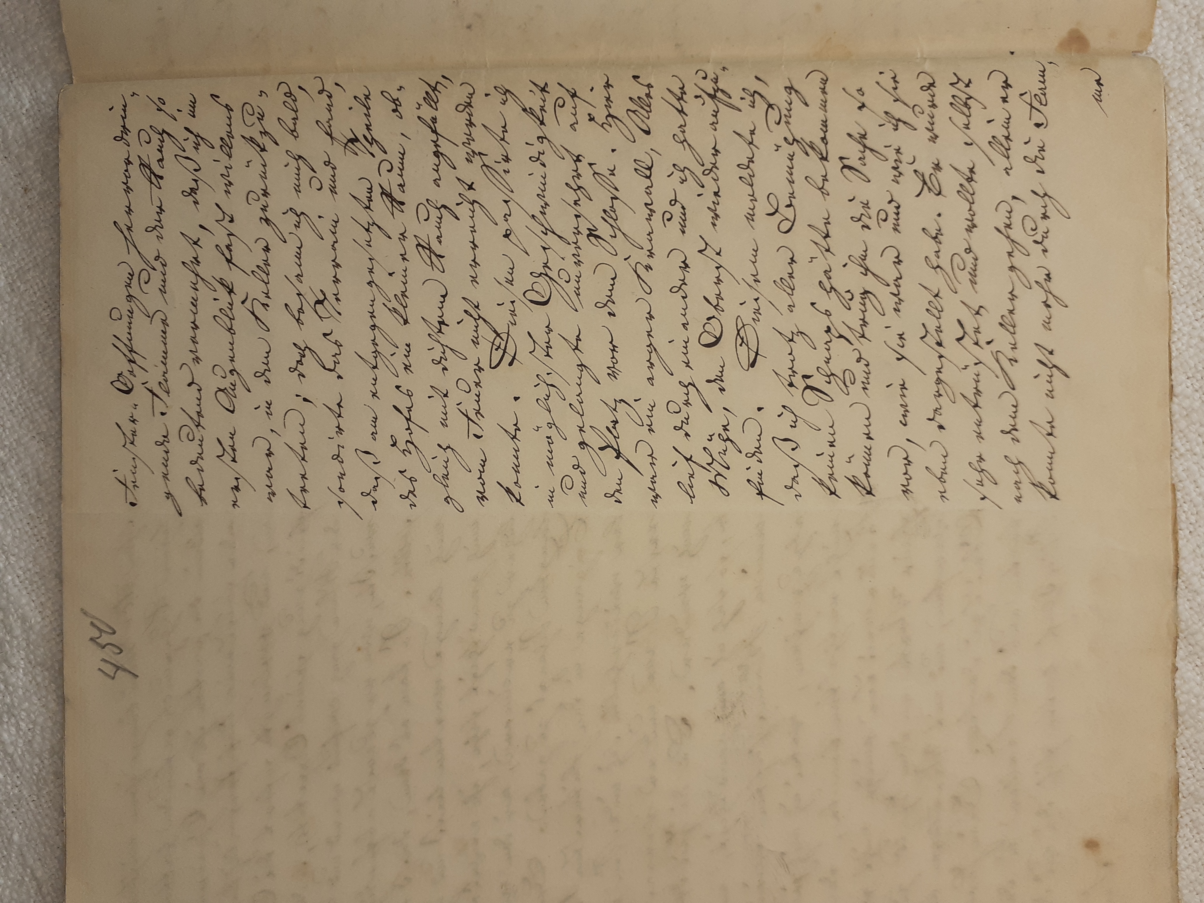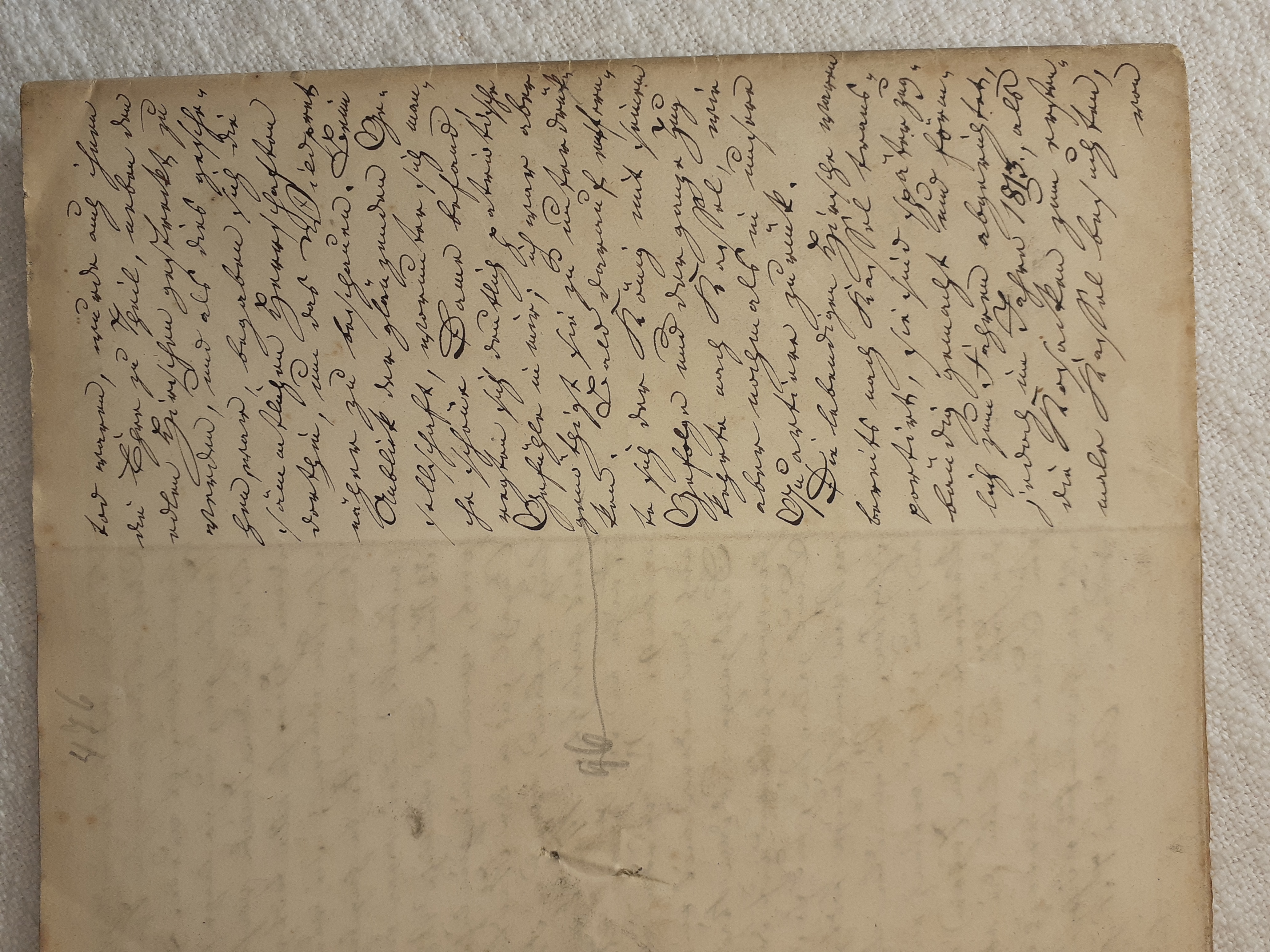 mit herein zu fahren. Der Knecht mähte und wir nahmen hinter ihm das Futter auf. Unvorsichtig kam ich dem Mäher zu nah und er hieb mir mit der Sense die Wade des rechten Beins bis auf den Knochen durch, so daß man die Sense auf dem Knochen durch streifen hörte. Freilich stimmte ich hierbei ein Klagelied an, indessen faßte mich das Mädchen und trug mich nach Hause, wobei viel Blut verloren ging. Meine Mutter, die allerlei Hausmittel anzuwenden verstand, auch immer einen kleinen Vorrath von Pflastern etc. bereit hielt, reinigte die Wunde, stillte das Blut und verband solche mit Scharpie und Degestin4. Später verband ich sie selbst und der Schaden würde sehr bald geheilt worden seyn, wenn ich mehr darauf Bedacht gewesen wäre, Stöße, Schläge etc. davon abzuwenden. Das Merkmal von der Wunde ist