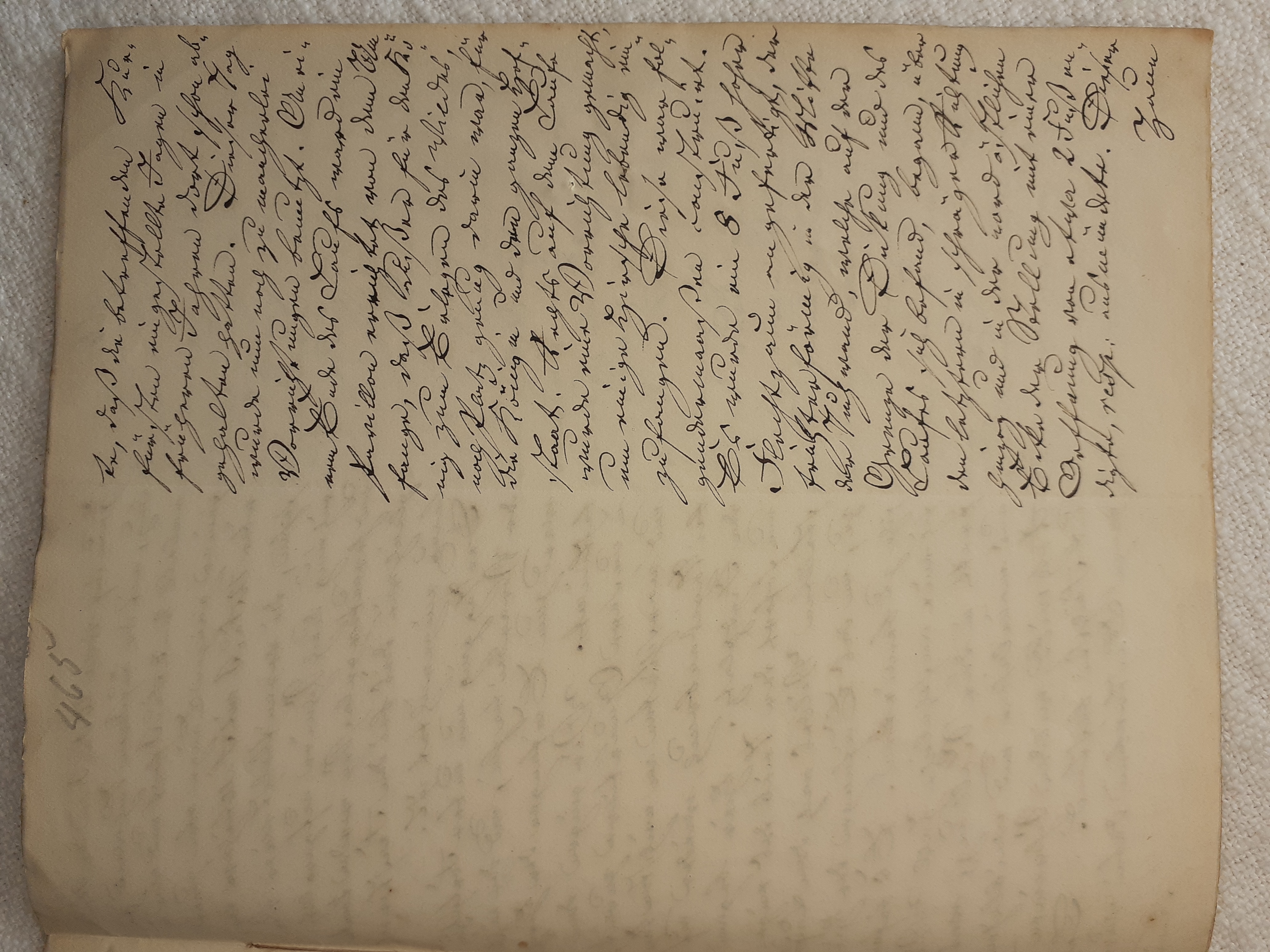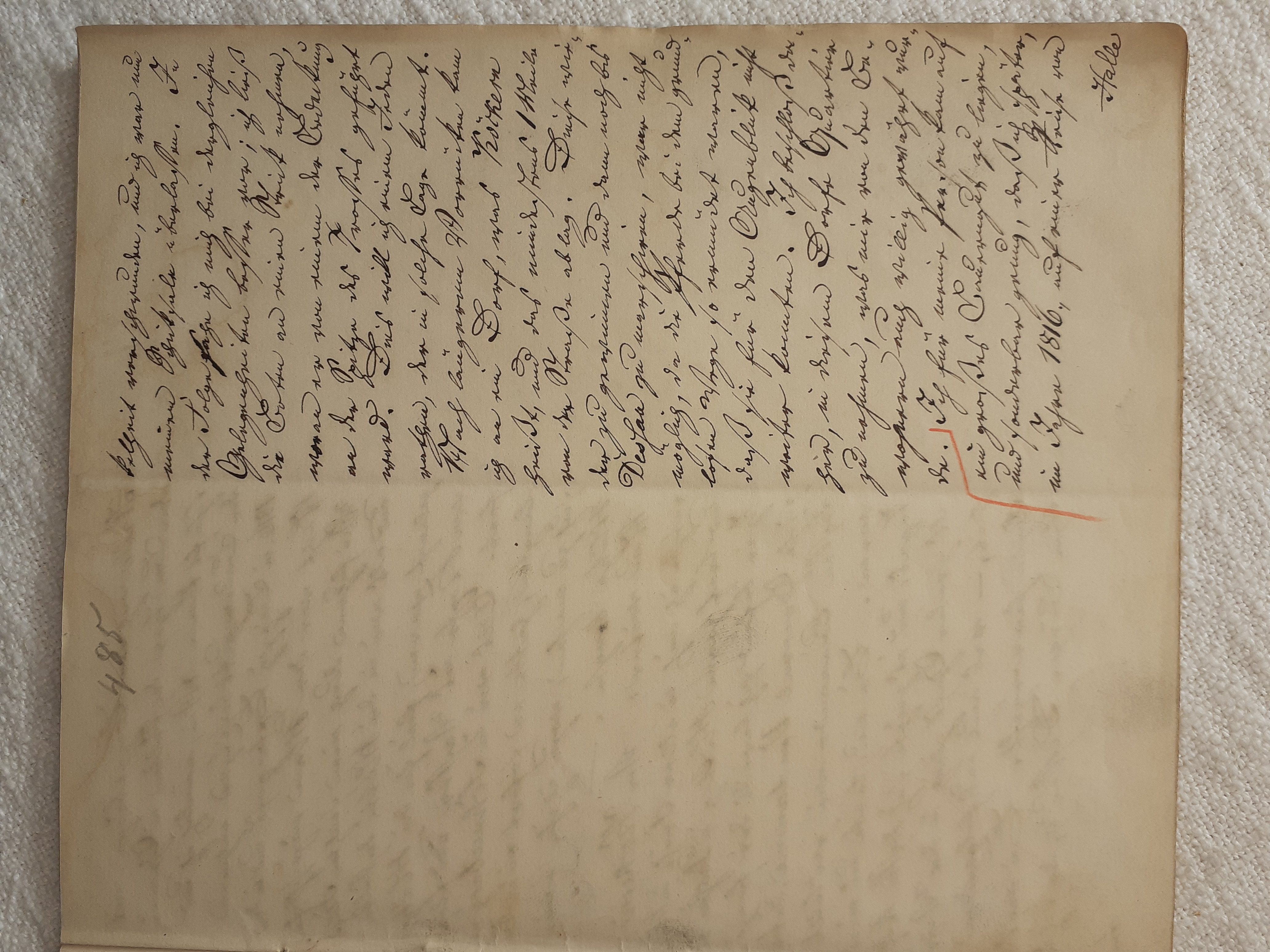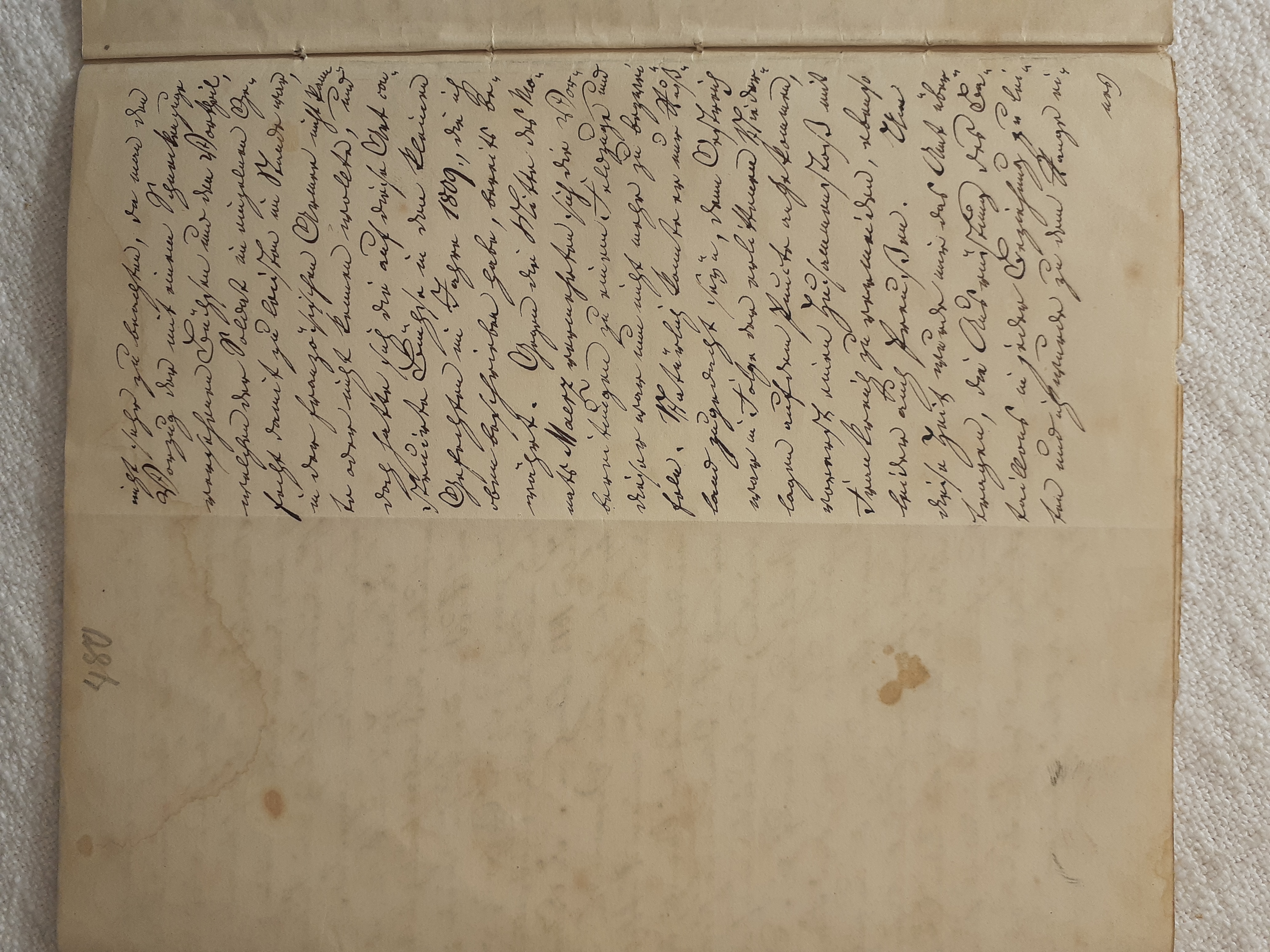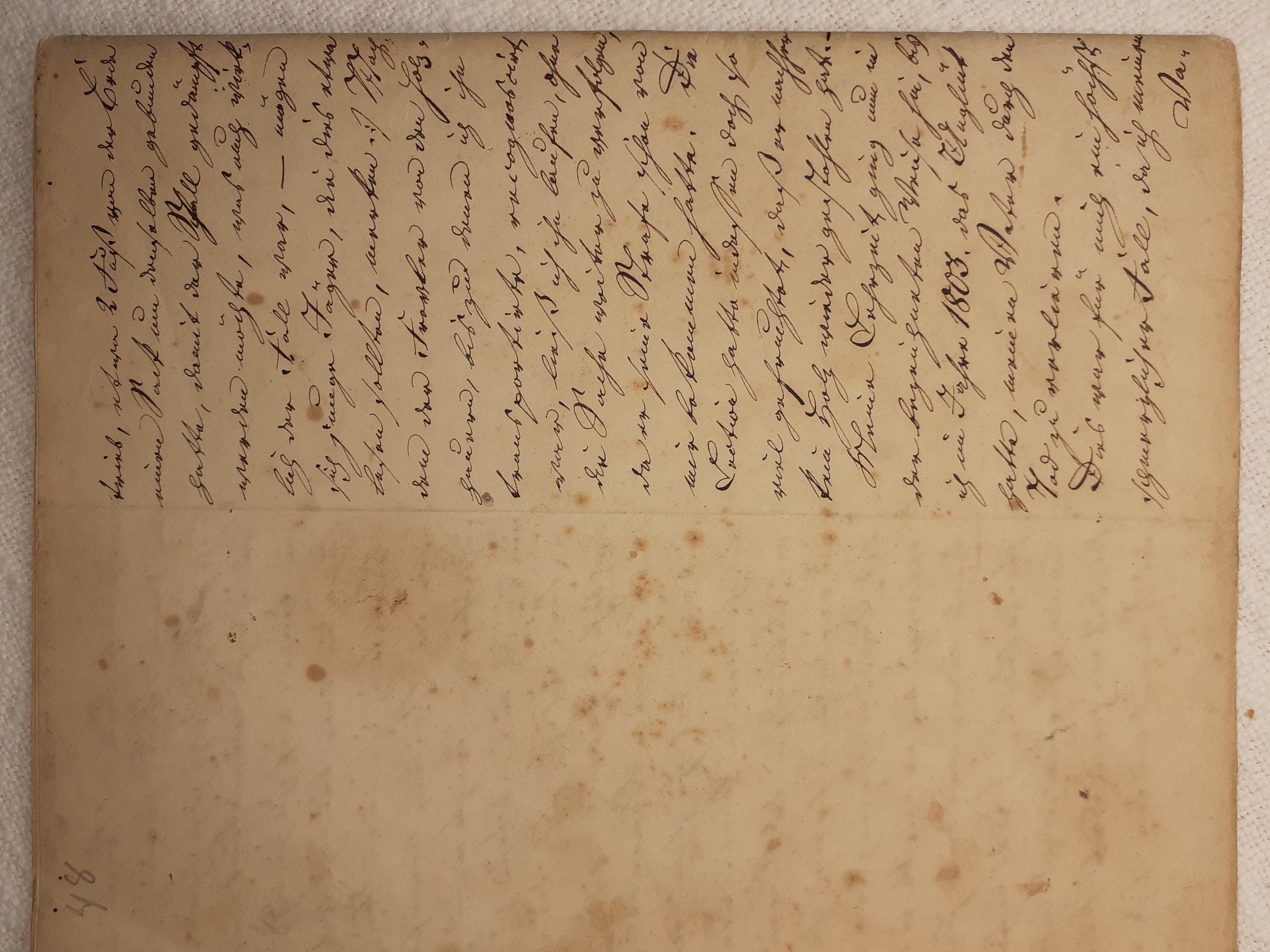 mit herein zu fahren. Der Knecht mähte und wir nahmen hinter ihm das Futter auf. Unvorsichtig kam ich dem Mäher zu nah und er hieb mir mit der Sense die Wade des rechten Beins bis auf den Knochen durch, so daß man die Sense auf dem Knochen durch streifen hörte. Freilich stimmte ich hierbei ein Klagelied an, indessen faßte mich das Mädchen und trug mich nach Hause, wobei viel Blut verloren ging. Meine Mutter, die allerlei Hausmittel anzuwenden verstand, auch immer einen kleinen Vorrath von Pflastern etc. bereit hielt, reinigte die Wunde, stillte das Blut und verband solche mit Scharpie und Degestin4. Später verband ich sie selbst und der Schaden würde sehr bald geheilt worden seyn, wenn ich mehr darauf Bedacht gewesen wäre, Stöße, Schläge etc. davon abzuwenden. Das Merkmal von der Wunde ist